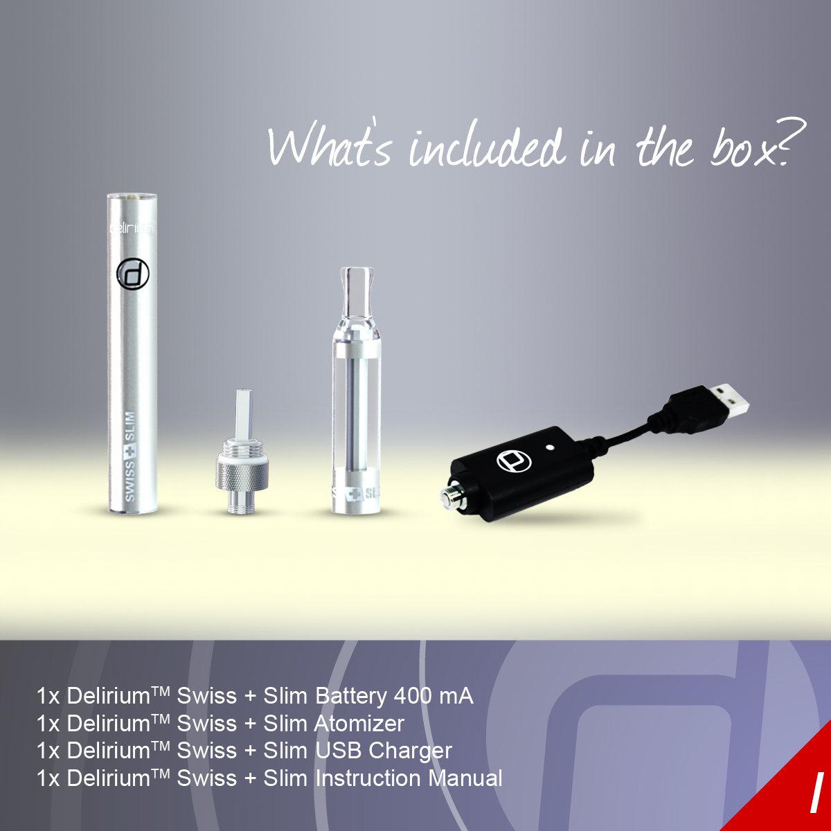 The Swiss & Slim is a brilliant electronic cigarette for those that want both style and long lasting vapour performance at the highest levels. The sophisticated technology of the Swiss & Slim makes it perfect for beginners and experienced vapers alike. If you're looking for an electronic cigarette that has great looks, is easy to use, and creates volumes of thick vapour, we strongly suggest the Swiss & Slim.