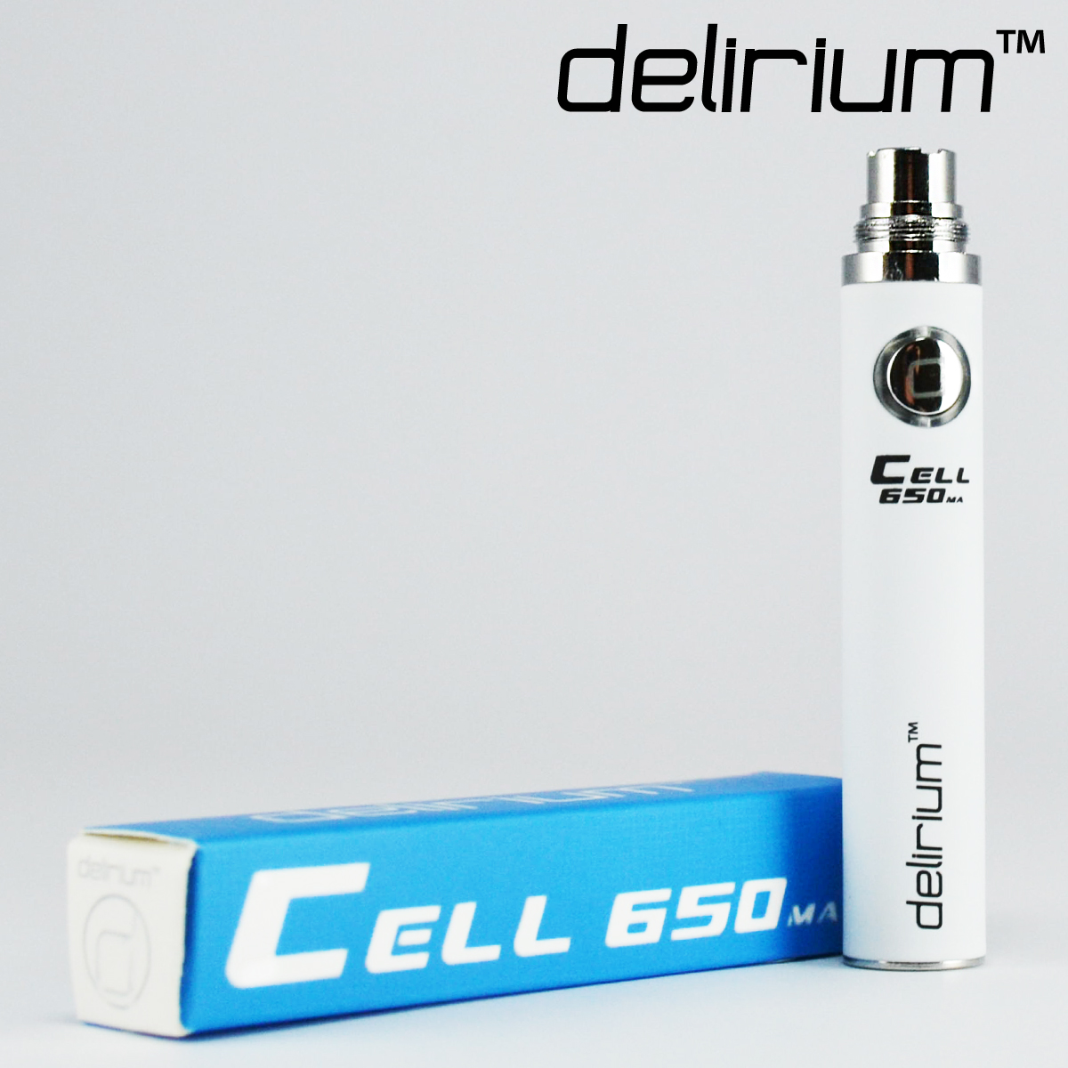 € 12.95 delirium Cell 650mAh Battery ( White ) delirium Cell 650mAh eGo/eVod battery. Full and satisfying button clicks, charges fast, top quality battery cells, affordable. Kit Contents 1x delirium Cell 650mAh Battery (White)
