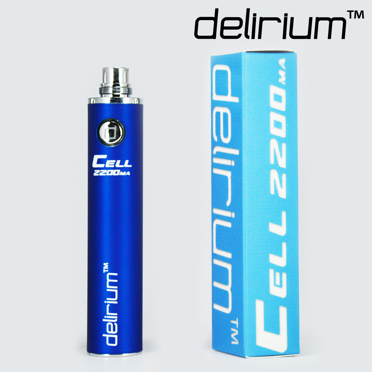 € 19.95 delirium Cell 2200mAh Battery ( Blue ) delirium Cell 2200mAh eGo/eVod battery. Full and satisfying button clicks, charges fast, top quality battery cells, affordable. Kit Contents 1x delirium Cell 2200mAh Battery (Blue)